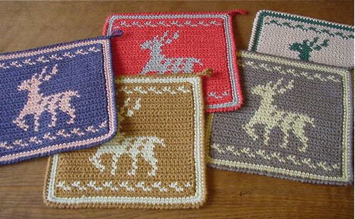 初めて使うリネン糸で編んだ、鹿マットです。 晩夏にしては、色が明るめかな。 といってもリネンは、素材の元々の色が染めた後にも響くようで、 きれいな色でも微妙にくすみますわね。 シルクやアクリルのように、ぱきっとした感じには発色しませんわ。 その…