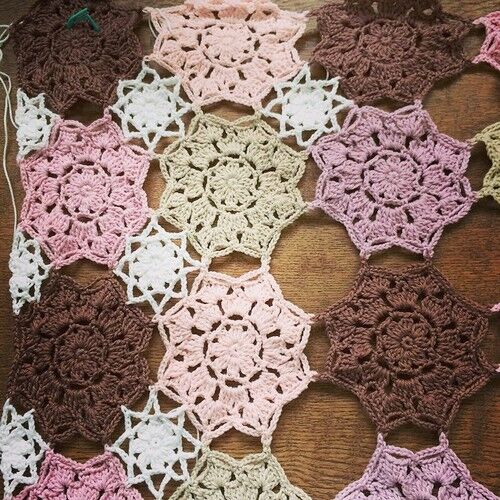 8 × 12 列がようやくつながり、 お次はモチーフの間を白い糸でつなぐ作業なり。