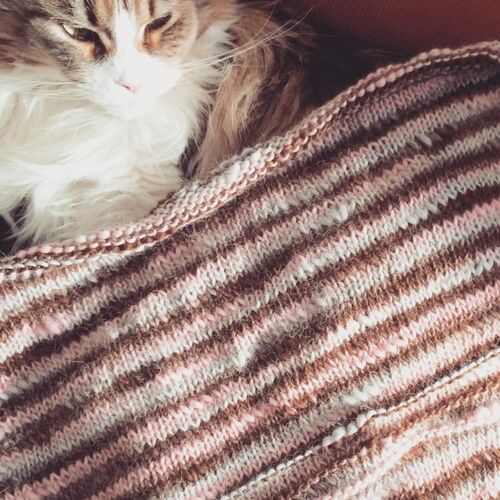 雪かきのように編む。いつか糸の山は崩れるはず…。