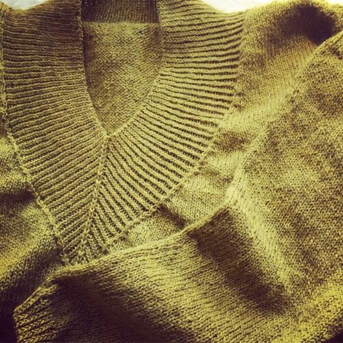 ずいぶん前に完成したつもりだった母のdexter なんですが、羽織ってみたら袖丈が私のジャストサイズ(水通しでタテに伸びたかも…)。 ・ いくらなんでもこれは長いだろうということで編み直し。5センチほど詰めました。悩みだったボタンは母に丸投げすること…